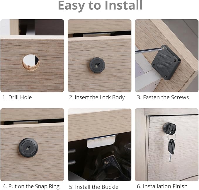 - Easy to Install: It comes with self-tapping screws, you can easily install it; Quick and easy-additional security for your small items and drawers are within reach; It can be mounted to metal or wood, door and drawer panels, etc