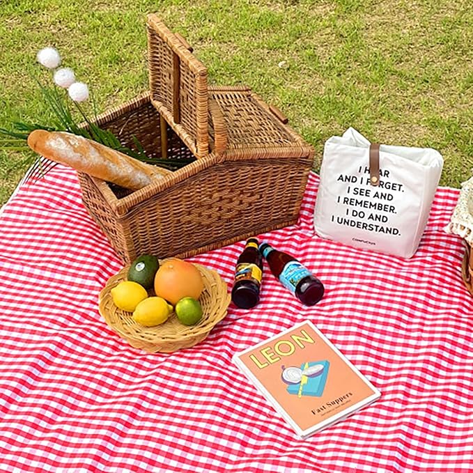 Cute Gingham Picnic Blanket, Waterproof Foldable, in Large 80x60in and Extra Large 80x80in, Portable Compact Beach Blanket, Oversized XL Outdoor Mat (Red, X-Large)