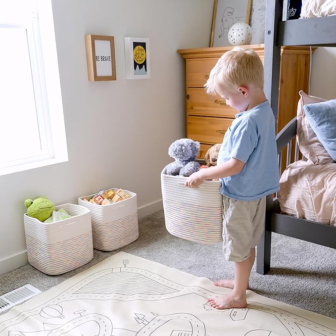 - Safe, Natural Cotton Storage Basket: Crafted from the highest quality material in the market, our toy bins are oh-so-sturdy and ready to take on little humans with a knack for nom-ing. They’re 100% safe, so you can rest easy if teething toddlers take a nibble.