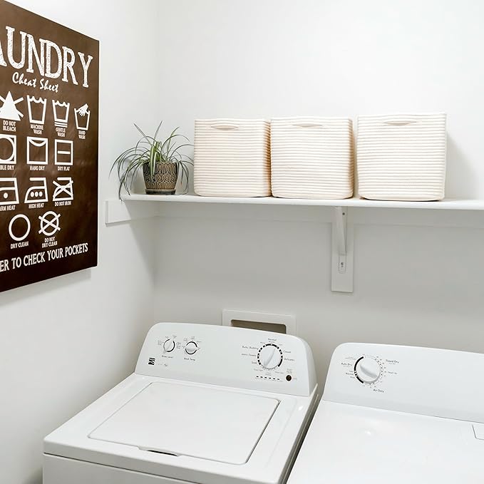 NaturalCozy 13 Inch Cube Storage Bins Cotton Rope Woven Baskets for Organizing 3-Pack | 13 x 13 Storage Cubes | Fabric Square Storage Baskets for Shelves Organizer, Kids Toy Bins, Closet Baby Nursery