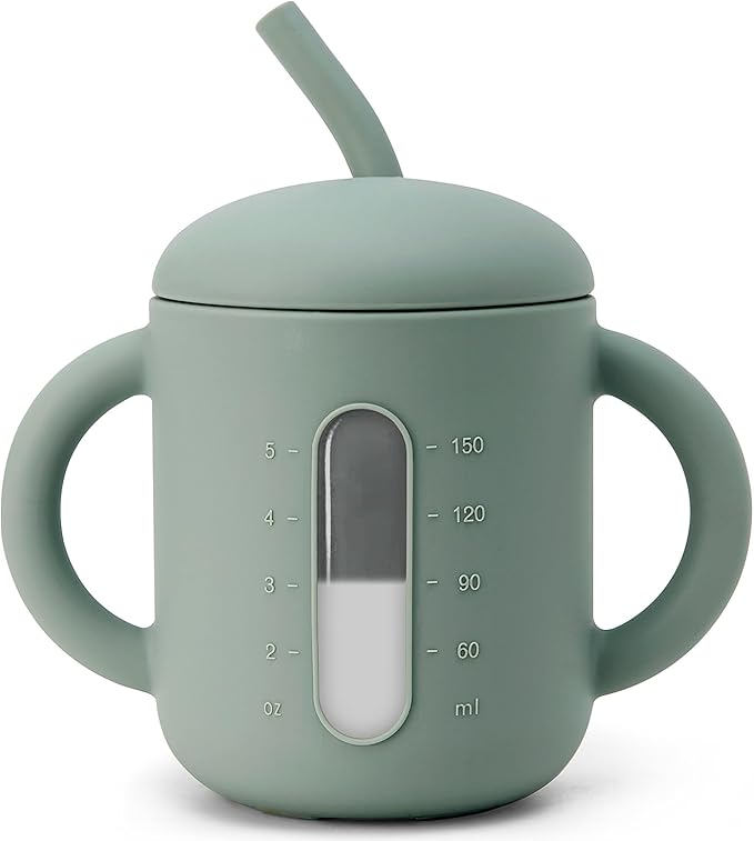 SAMiGO Silicone Sippy Cup, Baby Straw Cup for 6 12 18 Months, Sippy Cup with Straw for Toddlers 1-3 Years, Baby Water Cup for Drinking and Training, 6 oz