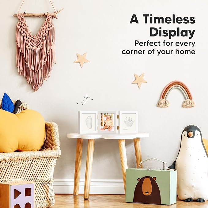 - Sturdy Wood Frame, Real Glass Cover - Our tri-fold baby handprint footprint keepsake kit maintains its pristine condition for years to come. It’s a lovely, everlasting newborn keepsake for your baby room decor. A must-have newborn baby essentials.