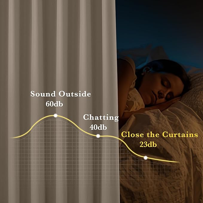 - 100% Blackout: These full blackout curtains are designed with a black coating liner backing that completely blocks out sunlight and harmful UV rays. They create a dark environment, allowing you to enjoy a restful sleep even during the day.