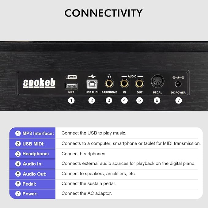 - MEDIA CONNECTIVITY: The electric keyboard piano offers seamless connectivity to devices such as smartphones,tablet, and computers through its MIDI-USB output, ensuring compatibility with music learning apps like POP Piano. With Bluetooth capabilities, this piano can also function as a speaker, fueling the passion for music education.