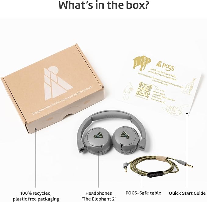 - DETACHABLE CABLES: extend the lifetime of your POGS by replacing the audio cable if needed. The optional POGLink cable enables music sharing with other POGS The Elephant headphones.