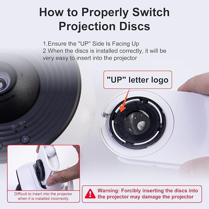 - 【13 IN 1 Nebula Projector】 - Star projector galaxy light comes with 13 display scenarios: Solar System, Earth, Moon, Virgo Supercluster, Centaurus A, Black Hole, Antennae Galaxies, Wormhole, the Milky Way, Mystic Mountain, Sharpless 2-308, Small Magellanic Cloud, and Laniakea Supercluster. Each projection card has an introduction to the galaxy, helping you know more about space. PLEASE MAKE SURE the "UP" letter faces upwards when installing. Note: 13 projection cards total, 1 pre-installed in the projector
