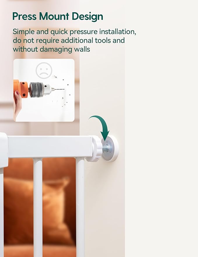 - Easy Installation: No screw needed.Pressure mount design for fast and safety installation while protecting your walls.Notice: please measure your openings before purchasing to ensure proper fit