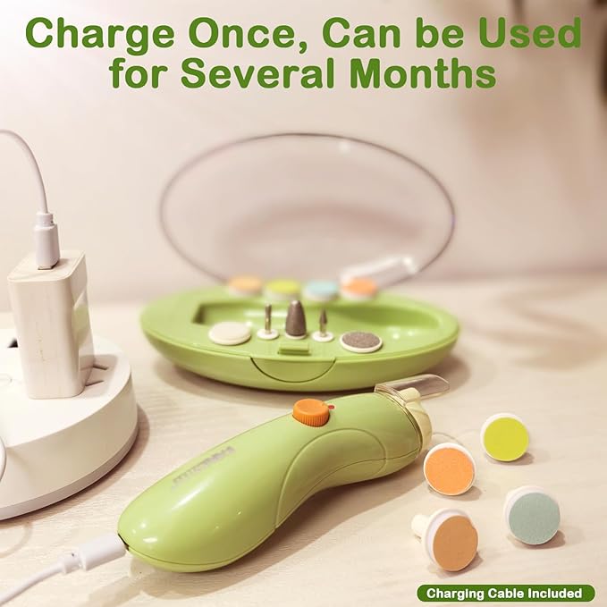 - RECHARGEABLE ELECTRIC BABY NAIL TRIMMER - Fansidi rechargeable nail trimmer is built-in with a 300 mAh battery, can keep working for approx 75 minutes, if trim the nails 10 minutes every time and twice per month, it can work for 3 monthes with a single charge. Really energy efficient and environmental protection. USB charge cable provided.
