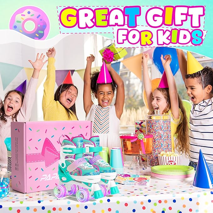 PAPAISON Adjustable Roller Skates for Girls Illuminating Wheels, Kids Toddler Rollerskates Ages 4-6 5-8 8-12