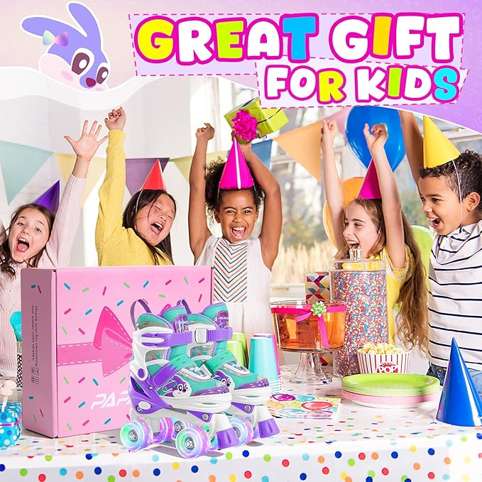 PAPAISON Adjustable Roller Skates for Girls Illuminating Wheels, Kids Toddler Rollerskates Ages 4-6 5-8 8-12