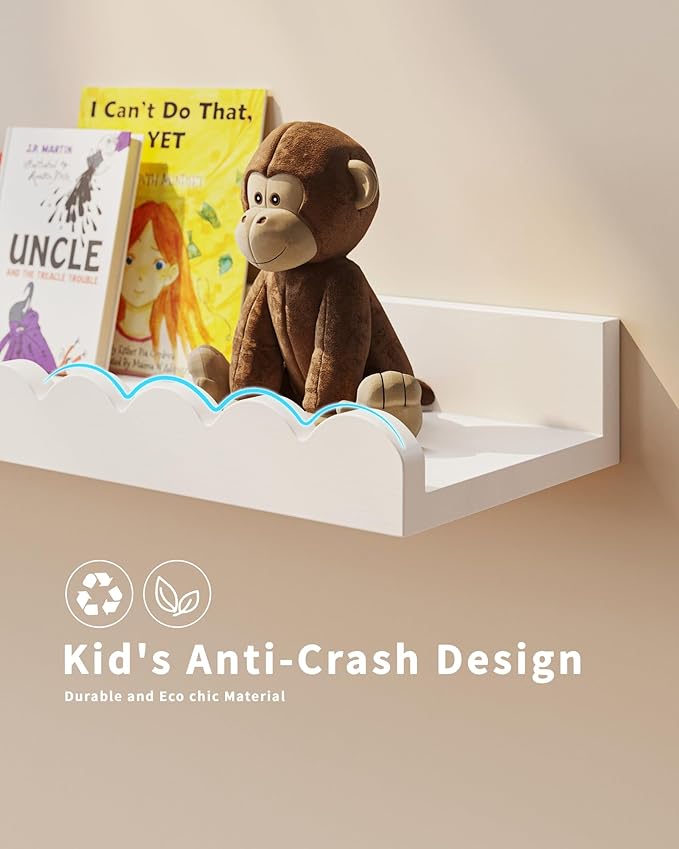 Nursery Book Shelves, 4-Pack White Floating Shelves for Wall Kids, Scalloped Shelves, Wall Book Shelves for Bedroom Kids, Toddler Room, Baby Room, Nursery Decor