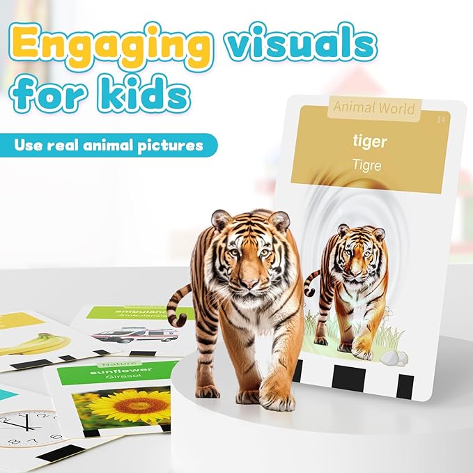 - Fun Bilingual Learning Tool: Help your child learn English and Spanish with the Toddler Bilingual Flash Card Machine Featuring 288 vocabulary words with clear pronunciation and vivid visuals it creates an engaging joyful bilingual learning experience for ages 3 to 6