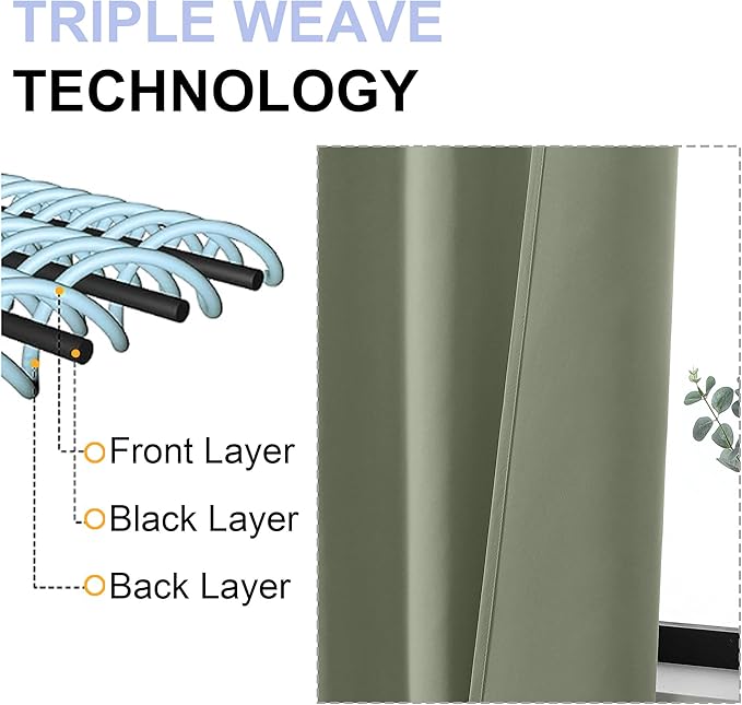 - Energy Saving: The triple-weave light-blocking fabric balances room temperature by blocking heat in summer and cold in winter. Protect your furniture, floors, and artworks from the damaging effects of sunlight, and let the sage green curtains pay for themselves over time. They are perfect for living rooms, bedrooms, yards, patios, villas, parlors.