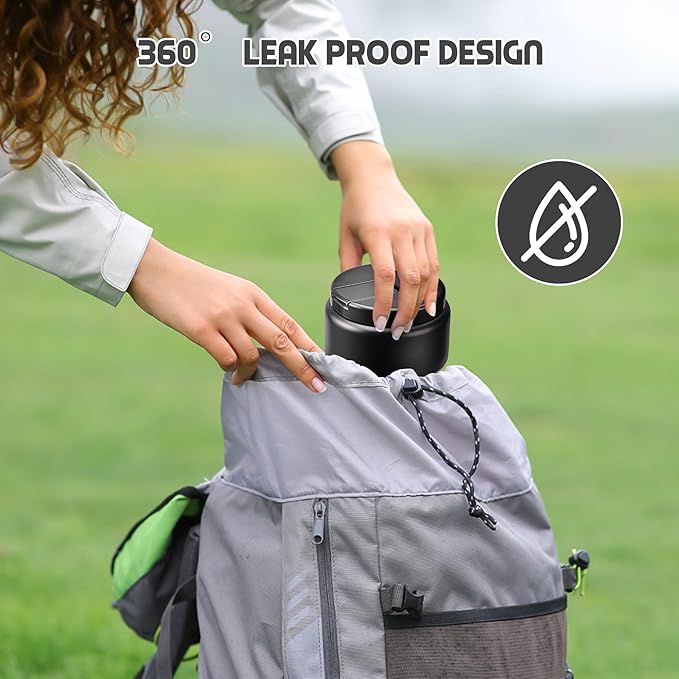 - 100% Leak Proof :Our food thermo comes with a thick silicone gasket. It is full sealed. So you can toss it in your bag or insulation bag without worrying about spills. Wide mouth design are also very easy to clean.