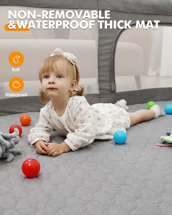 - Non-Removable Thick & Waterproof Mat:The playpen features a non-removable thick mat that provides a soft and comfortable surface for your baby; the waterproof material allows for easy cleanup of spills, making it ideal for both indoor and outdoor use