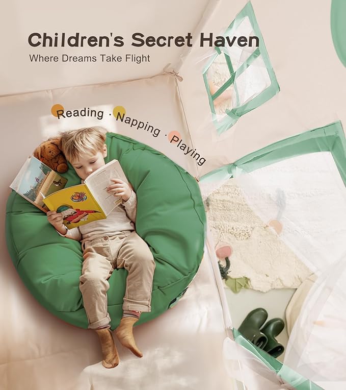 Play Tent with Mat, Star Light Large Kids Playhouse with Windows Easy to Wash, Indoor and Outdoor Play Tents for Kids, Little Dove Toys for Girls, Boys, 47x40x52 (Green Playhouse, Large Size)