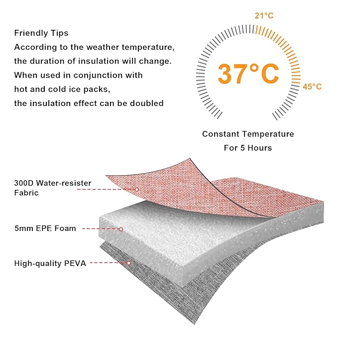- KEEP COOL OR WARM EFFECTLLY: Insulated lining can keep bottles cool or warm, will help your food or drinks keep the optimal temperature.