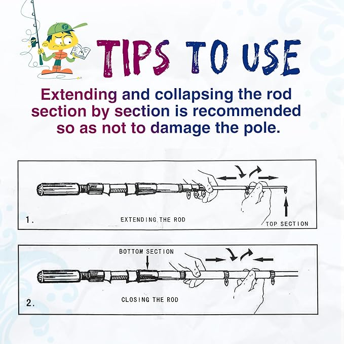 - Convenient Portability: Our collapsible fishing rod makes it easy to transport and store, and you can pack all your fishing accessories into one fishing bag, and you can take them wherever you want, and the fishing bag also provides added protection while on the go. Tips: Extending and collapsing the rod section by section is recommended so as not to damage the pole