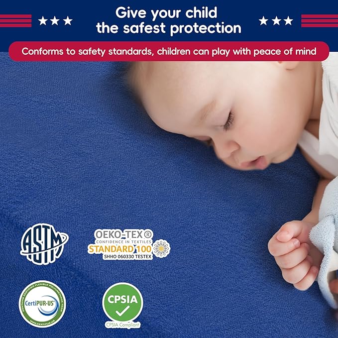 - Safe Premium Materials: Our soft foam play sets for babies are made of CertiPUR certified foam and OEKO-TEX certified fabric, ensuring a safe and reassuring play environment for toddlers. The rounded edges are designed to prevent bumps and injuries