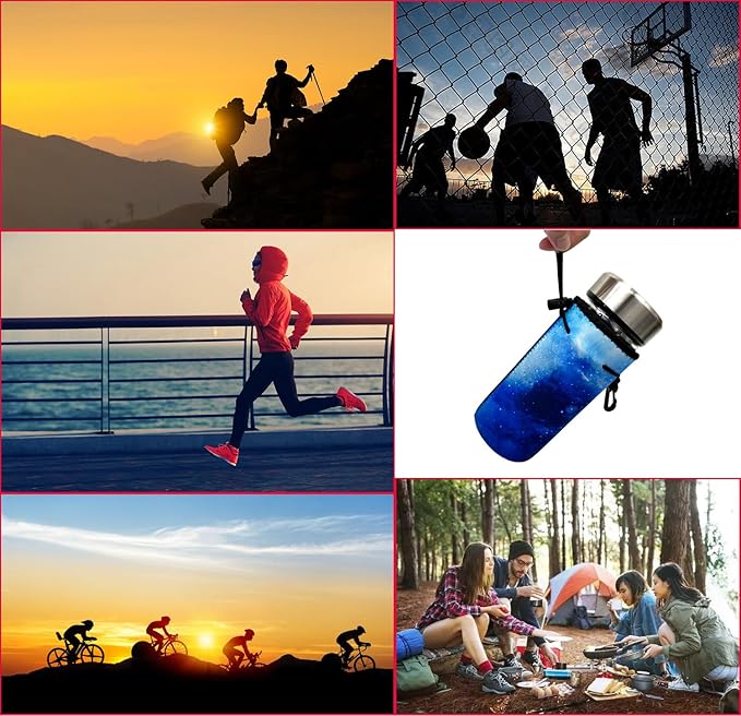 - Choose 5 different patterns bottle sleeve: Blue sky, purple sky, flower, feather and bubble. Happiness accompanies your journey!