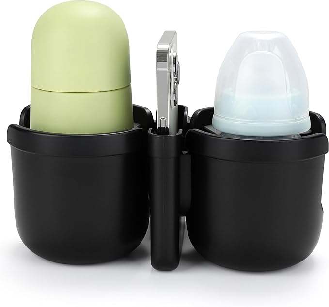 - This 2-in-1 stroller cup holder with a phone holder, it can load drinks bottles and cell phone at the same time. You can see new messages, incoming calls in the first time when you are pushing a stroller or running on a treadmill. It is applicable to most cell phones on the market.