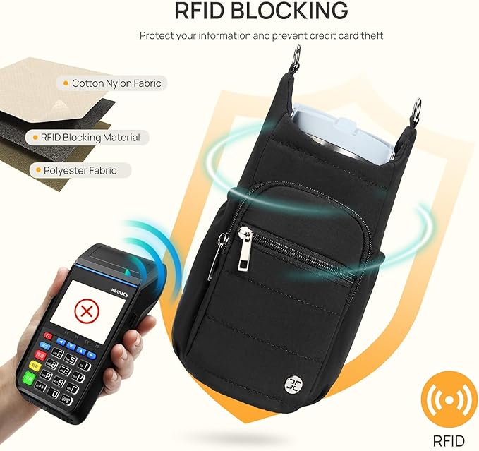• Telena Water Bottle Bag: Made of high quality down fabric with adjustable vintage shoulder straps makes this water bottle holder classic yet stylish. The soft and waterproof down filled cotton material has better water and shock resistance while maintaining high softness and elasticity. Not only to prevent the water cup bump, but also wear light. Please note that this crossbody bag cannot be washed or machine washed