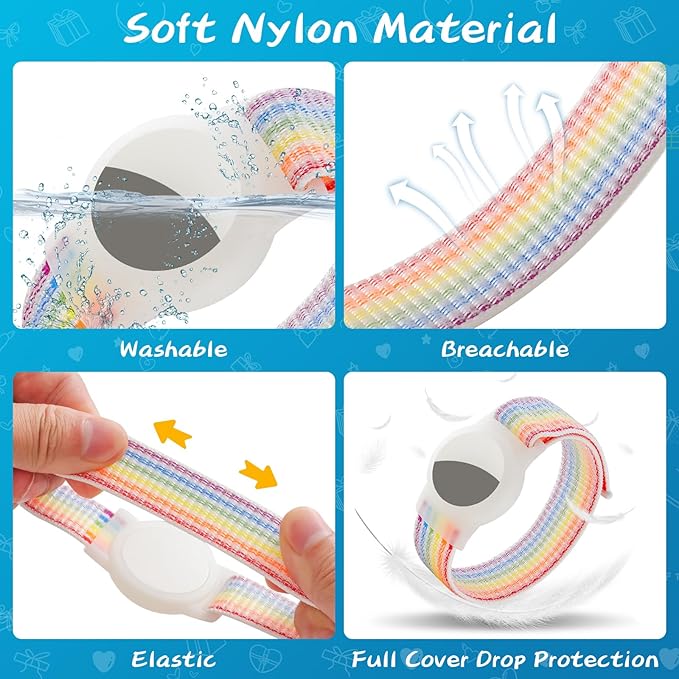 - 【Premium Material】This protective bracelet is made of high-elastic nylon, which is not easy to deform and tear, easy to clean, and dry quickly. The protective case is made of TPU, which is hard and elastic, and perfectly wraps your tracker to prevent scratches. The highly elastic cover has impact resistance, anti-scratch, sweat-proof & washable features, preventing the Air tag from being scratched when accidental drops happen.