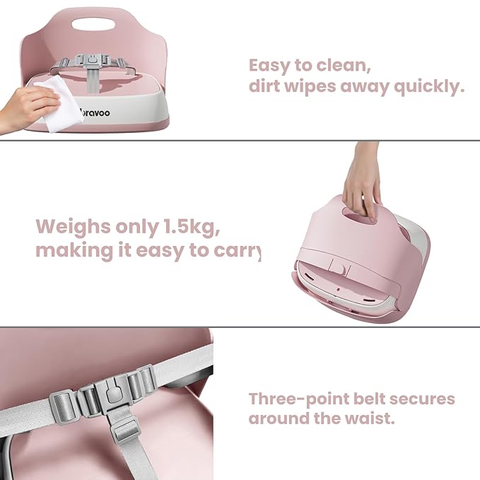 Baby Booster Seats, Toddler Booster Seat for Dining Table with Adjustable Straps, Portable Compact Portable Baby Chair for Dining and Travel (Pink)