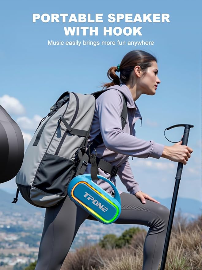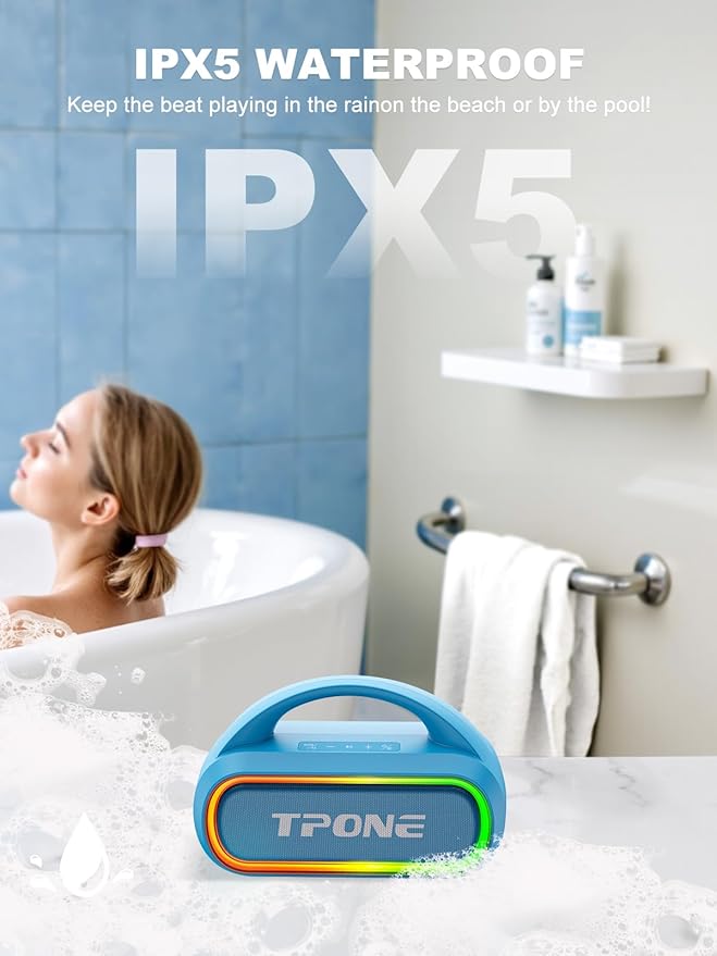TPone Portable Bluetooth Speaker, 30W (Peak) Wireless Speaker for Outdoor Travel, 100ft Range, Multi-Colors Rhythm Lights, TWS Pairing, BT5.3, for Home/Party/Outdoor/Beach (Sky Blue)