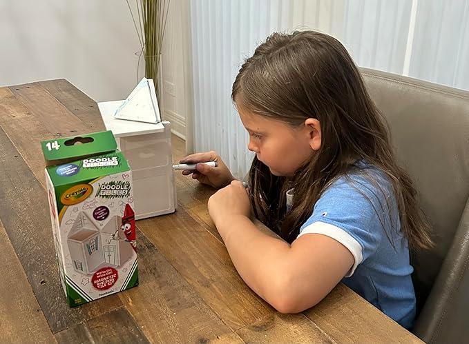 CreateOn Crayola Doodle Magnetic Tiles, Building Set for Kids, Magnetic Building Toys for Kids, STEM Travel Toys for Boys and Girls Ages 3+, 14-Piece Set (Doodle)