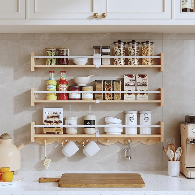 - 【MULTI-PURPOSE FLOATING WALL SHELVES】: Your creativity with this wall shelf. You can place it in your child's bedroom as a space-saving bookshelf or use it as a spice rack or condiment stand in the kitchen. Also can put it in the bathroom to store shampoo, conditioner, face wash, body soap, toothpaste, toothbrush, and other toiletry essentials.