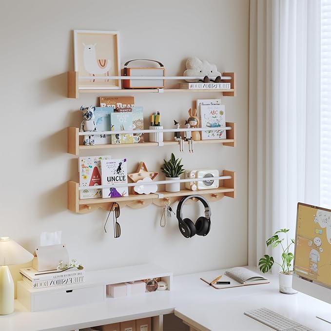 - 【GREAT FOR NURSERY AND KIDS ROOM】: Mount these floating shelves on your nursery wall to place children’s books, small picture frames, and other decorative pieces . Shelves for wall help your child grow furthermore while making everything within hands reach!