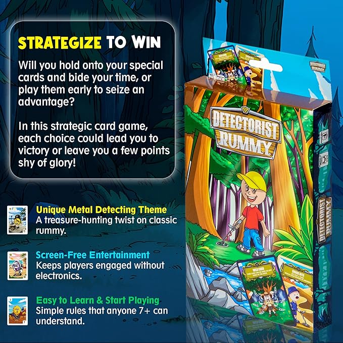 Detectorist Rummy Playing Card Game Set for Kids and Adults โ Fun Strategy Card Game for Family Game Night โ Ages 7+ โ Easy to Learn, Enhances Math & Thinking Skills โ Great Gift or Stocking Stuffer