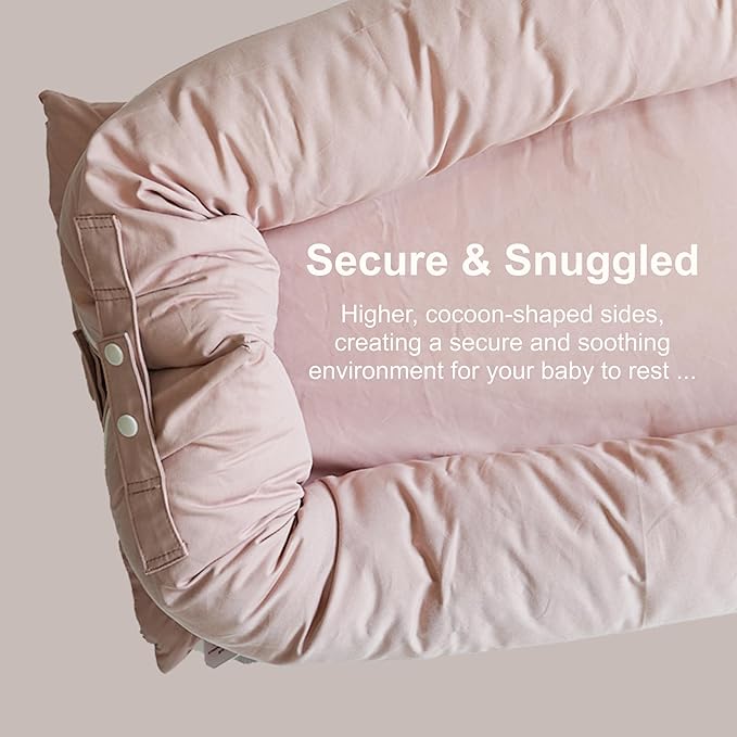 Deluxe Infant Lounger, Baby Nest Cover for Baby Girls & Boys, Newborn Essentials for Baby 0-12 Months, 100% Cotton (DustyRose)