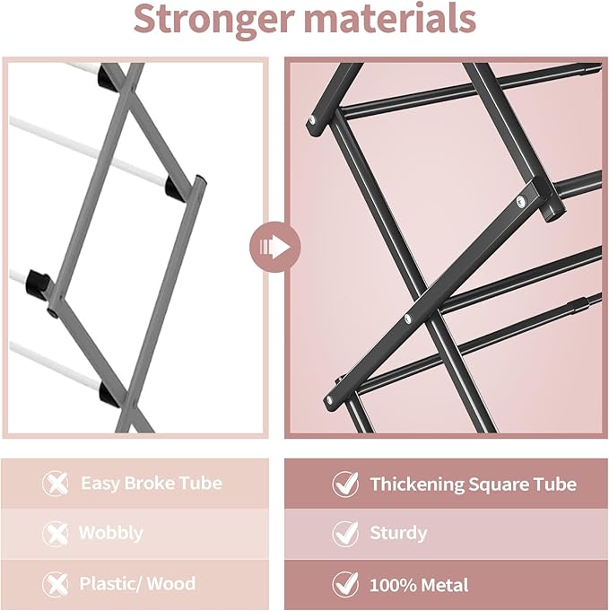 - Material: The APEXCHASER clothes drying rack is made of all metal and has a rust-resistant coating, which can endure different weathers for indoor and outdoor use, making it perfect for apartments or small living spaces.