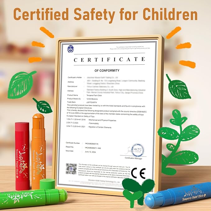 - Non-Toxic and Washable: Certified by ASTM D4236 and EN71, these tempera sticks are safe and easy to clean. The special washable formula allows color marks to be easily removed with water