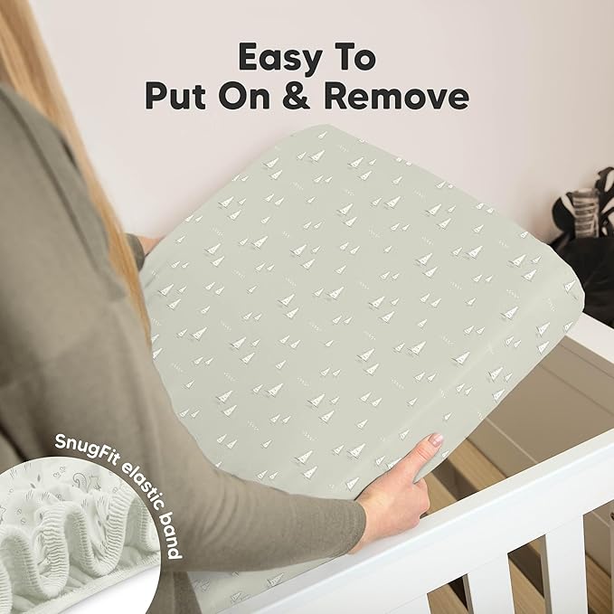 - High Quality Elastic Band - Our organic cotton crib sheets, use premium elastic SnugFit Band seamlessly concealed to ensure these standard crib sheets stay in place securely for safe and soothing sleep.
