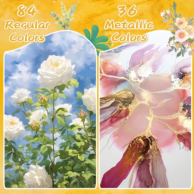 - 【139 PCS All in One Art Kit】The Premium watercolor set includes 84 regular colors, 36 metallic colors, 4 pastel colors, 4 fluorescent colors, 1 water brush pen, 3 detail paintbrushes, 1 art sponge, 1 swatch sheet, 1 nylon paintbrush, 1 HB pencil, 1 rubber, 1 pencil sharpener, 1 transparent palette, total 139 pcs!
