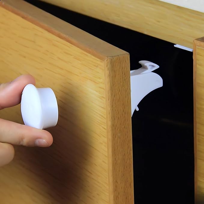 - These magnetic keys work with existing child safety locks on cabinets, drawers, cupboards, closets, and desks. They ensure you can easily unlock any magnetic baby lock in your home.