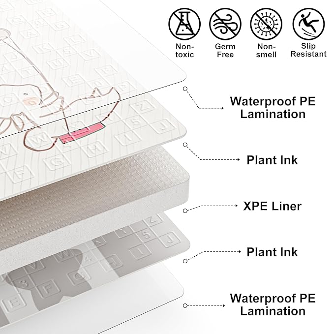 - Safe and Comfortable: Made of high-density, scratch resistant XPE foam material, BPA free and non-toxic, provides ample space for babies to crawl, walk and play. 0.4 inch thick mat provides cushioning protection, Protect infants from serious falls and floor collisions
