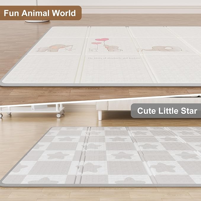 - Reversible and Foldable: Foldable design allows you to easily store, could be quickly folded into a smaller size to store in a corner. Double sides design with cute patterns, including animal patterns, makes the floor mat educational and help your child learn and explore, stimulate their imagination and creativity