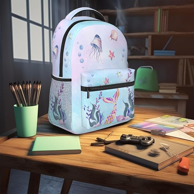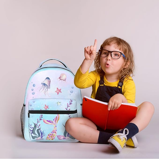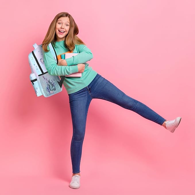 Girls Mermaid Backpack, Girl's Dreamy Underwater World School Bag with Jellyfish & Starfish Prints, Kawaii Lightweight Bookbag for Girls Boys Age 5-12, Ideal for School Travel Outdoor Hiking