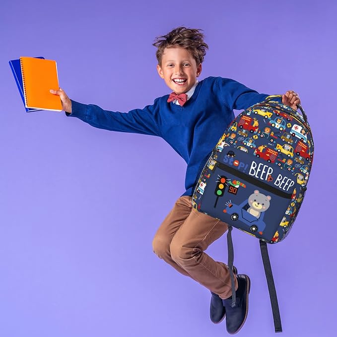 Cartoon Car Animal Backpack For Kids School Boys Girls, Bear & Traffic Light Design, Lightweight Waterproof Ergonomic Backpack For Age 3-5 5-7 7-9 9-12 School Book Bag Daypack Outdoor Play