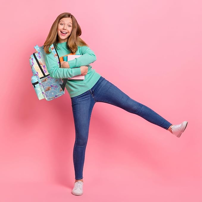 Girls Mermaid & Whale Print School Backpack, Cute Ocean-Themed Book Bag for Kids Girls Boys, Waterproof Lightweight Ergonomics Backpack for Age 3-12, Ideal for School & Outdoor Activities