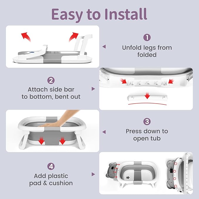 - Space-Saving Fold: Unique folding design collapses flat for easy storage, making this Kerbwry baby tub suitable for small homes or travel