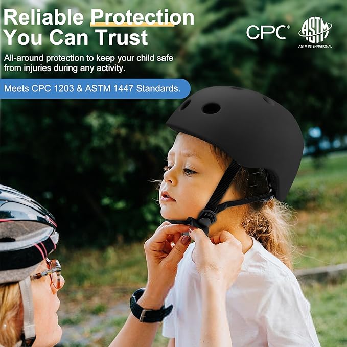- Certified for Safety: Our helmet meets U.S. Consumer Product Safety standards, with dual certifications from CPSC 1203 and ASTM 1447, guaranteeing reliable protection. The adjustable head circumference (18.89"-21.25"/48-54cm) and easy-to-use dial adjustment system make it perfect for children aged 3-8