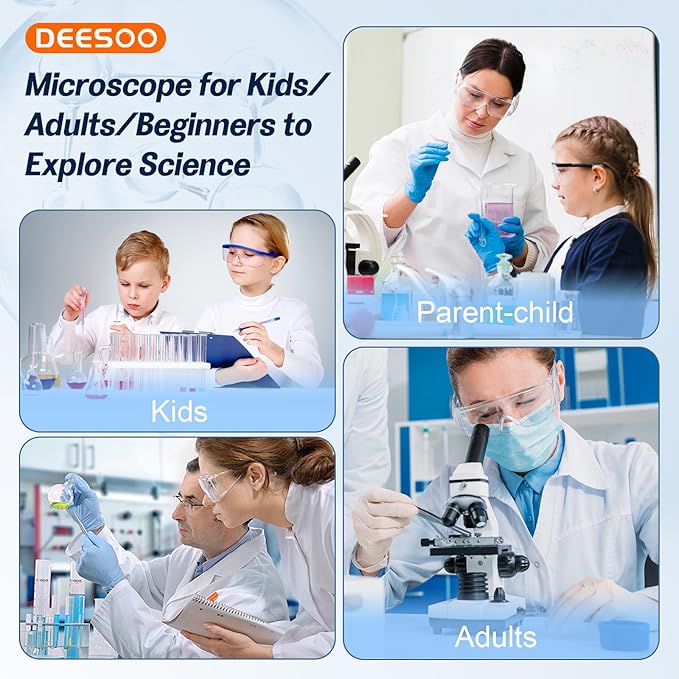 - 【Science Education Tool】The portable Deesoo microscope with a magnification range of 40X to 2000X allows you to bring experiments anywhere. Designed for kids, students, adults, and beginners, it is an ideal choice for science education at home, school, and laboratories. Our microscope is designed and manufactured under strict quality control to provide a great customer experience. If you have any questions, please contact us, and we will resolve them within 24 hours.