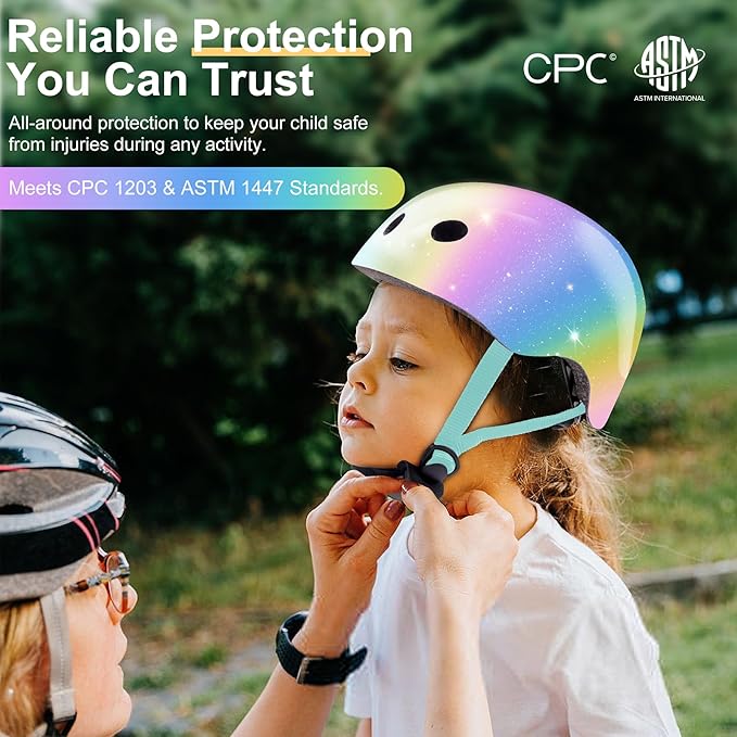 - Certified for Safety: Our helmet meets U.S. Consumer Product Safety standards, with dual certifications from CPSC 1203 and ASTM 1447, guaranteeing reliable protection. The adjustable head circumference (18.89"-21.25"/48-54cm) and easy-to-use dial adjustment system make it perfect for children aged 3-8