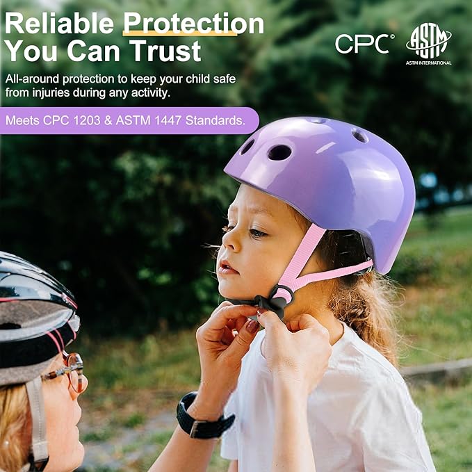 - Certified for Safety: Our helmet meets U.S. Consumer Product Safety standards, with dual certifications from CPSC 1203 and ASTM 1447, guaranteeing reliable protection. The adjustable head circumference (18.89"-21.25"/48-54cm) and easy-to-use dial adjustment system make it perfect for children aged 3-8