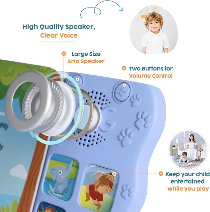 - Interactive Fun with 2 Volume Control Options: With 10 easy-to-press sound buttons, little hands can explore their favorite songs. The 2 volume control settings allow a gentle listening experience, making this talking book for toddlers 1-3 ideal for any environment.